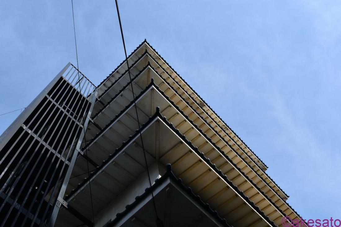 ビルに天守閣の装飾をつけたかのような、豪華なつくりである。数えると7階建てのつくりである。
