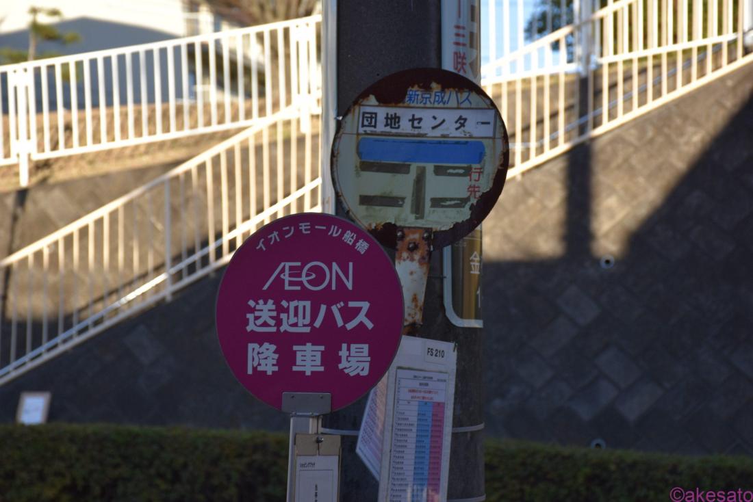 商店街の入り口は、バス停「団地センター」とある。また、イオンモール船橋の送迎バスもあるので買い物で利用する方が多いのかも。