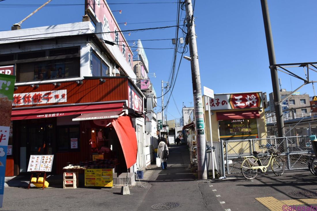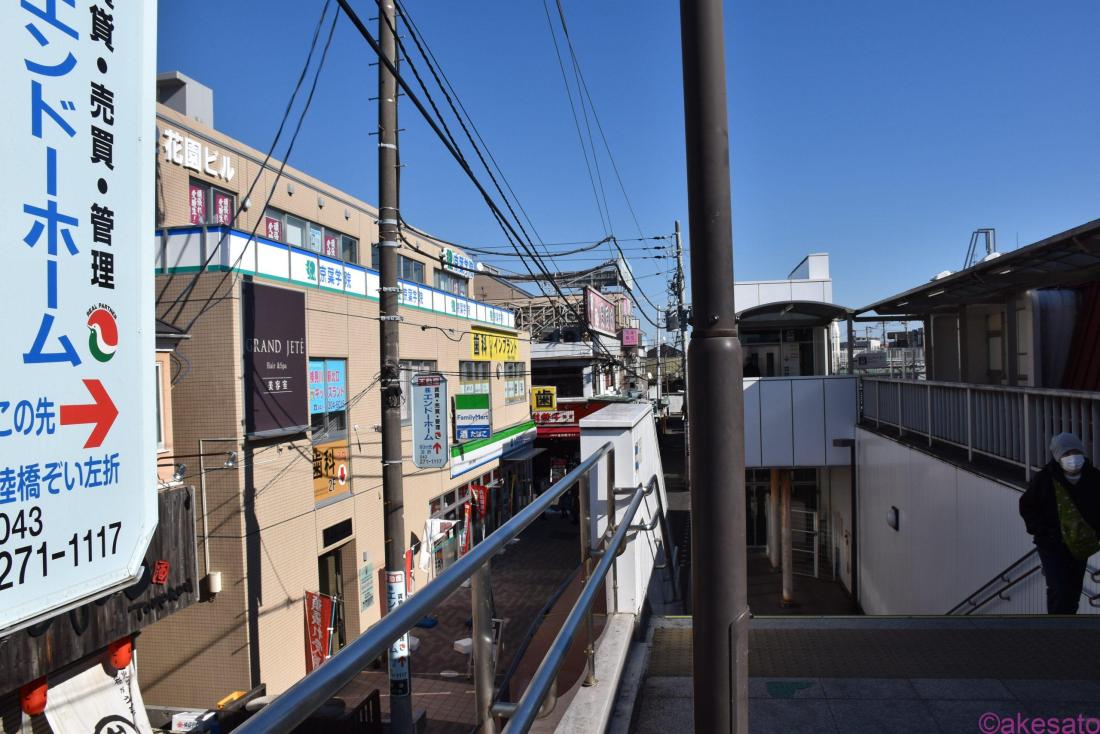花園2丁目。駅の北側は小さな商店街らしき通りとなっている。