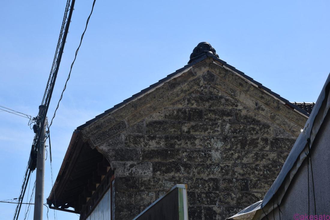 ヤマザキショップの脇道から海方面へ歩いていると、右手に石造りの蔵。