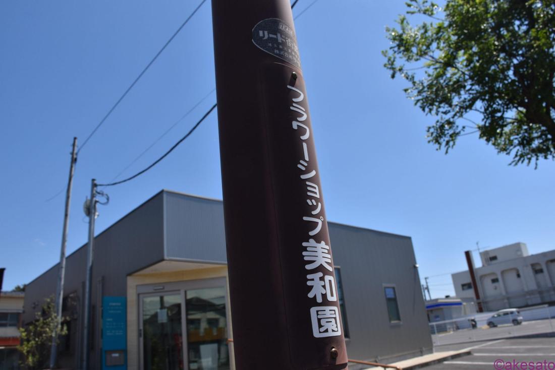 歩道のところにある街灯に、「フラワーショップ美和」と書いてあるので花屋さんの営業を確認。
