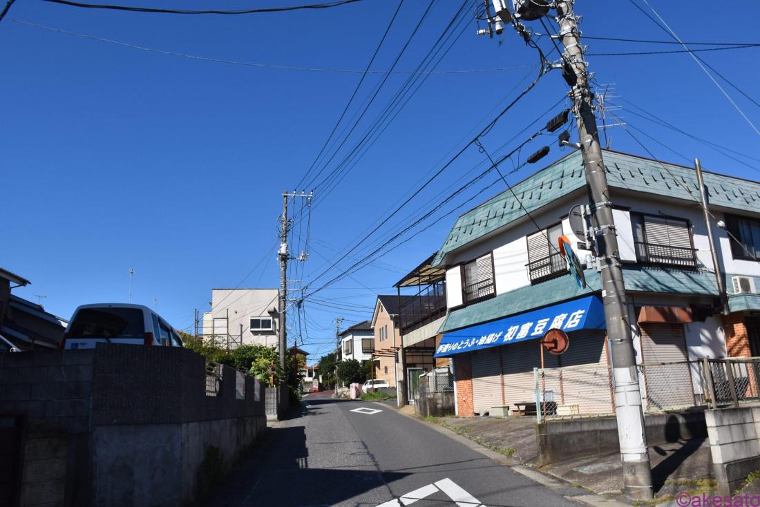 県道沿いに建つ和菓子屋「伊勢屋」の角から住宅街に入っていく。約1年近く前に探索した記事がこちら→初富駅「鎌小通り商店街」レトロな街灯が1本だけ残る小さな商店街の名残?