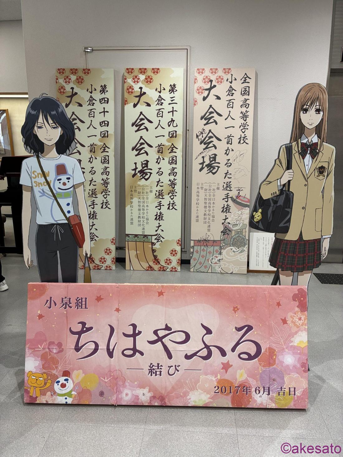 漫画『ちはやふる』関連のパネルやグッズ販売も充実。