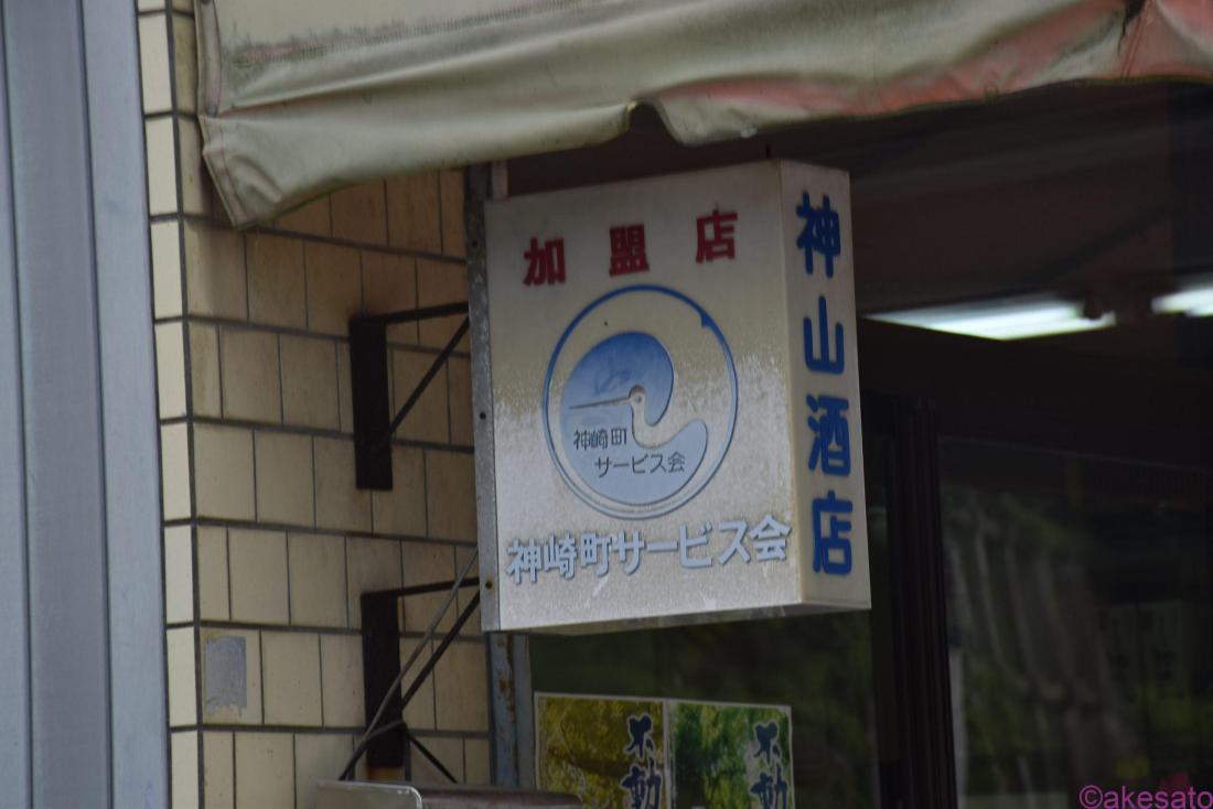 看板には「神埼町サービス会」と書いてある。商店街の名前かな?