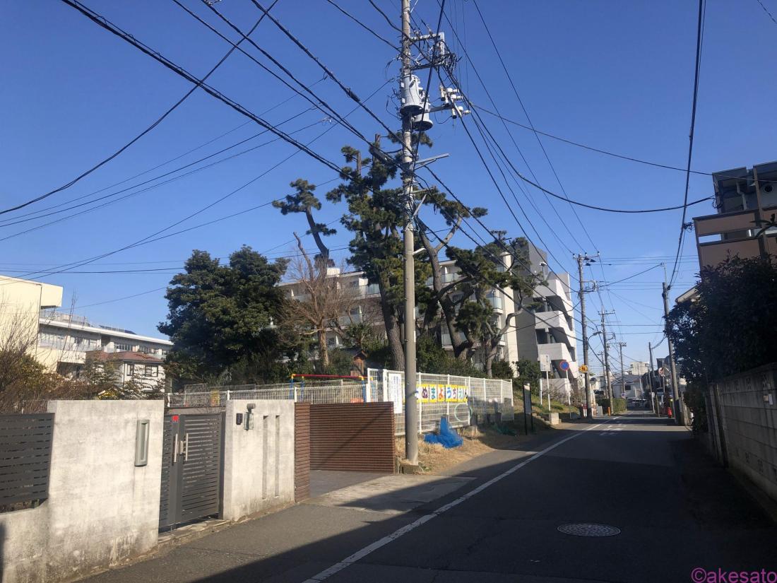 千葉県習志野市津田沼2丁目4−26。習志野郵便局近くのマンション「コスモヒルズ津田沼」の細い裏道に出た。