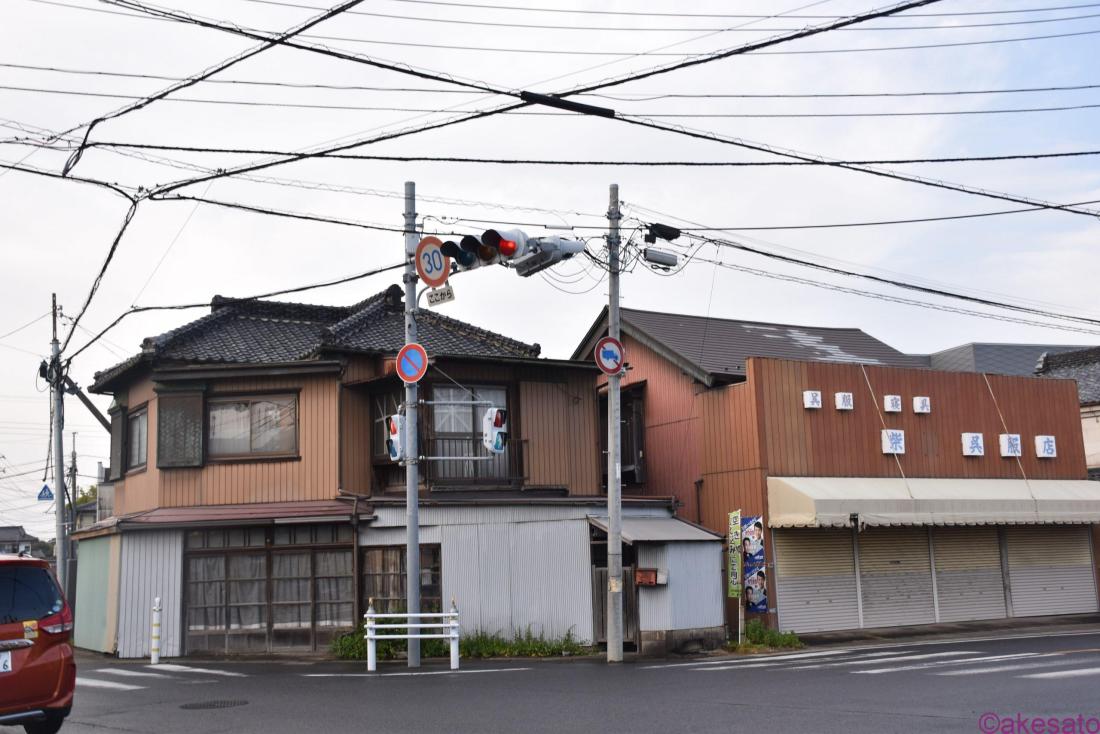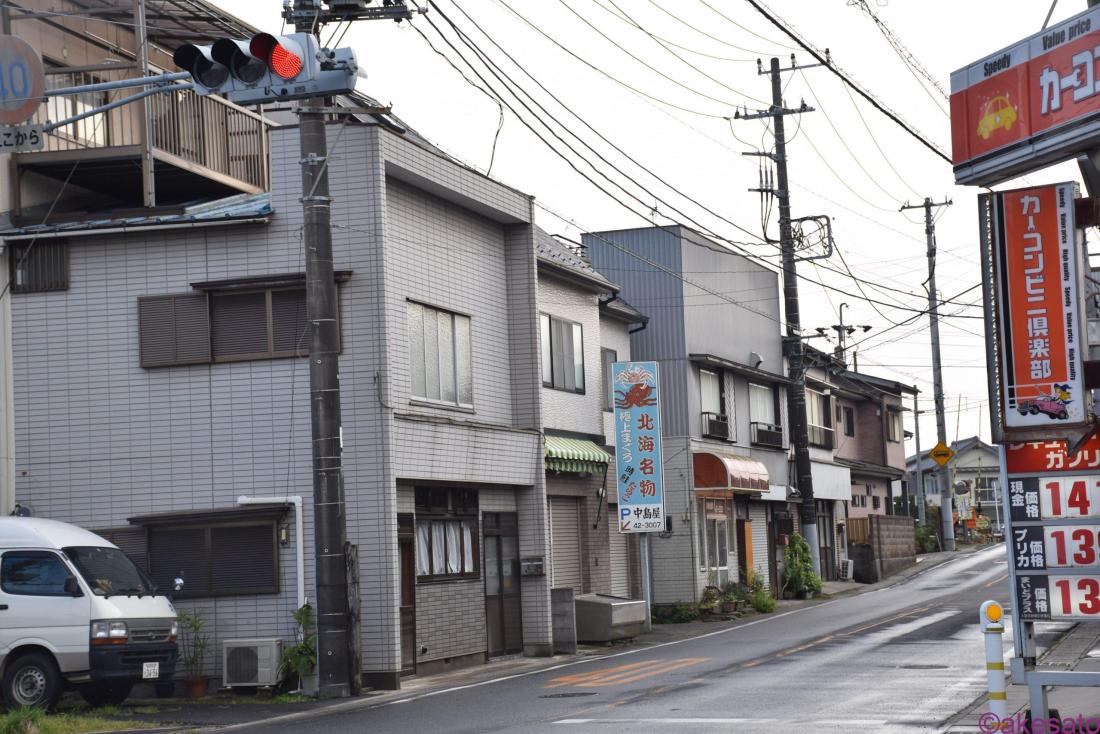 交差点の付近には商店が残っており、西側には「中島鮮魚店」。