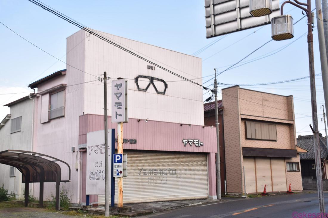南には眼鏡屋の「ヤマモト」。メガネのイラストが良い!