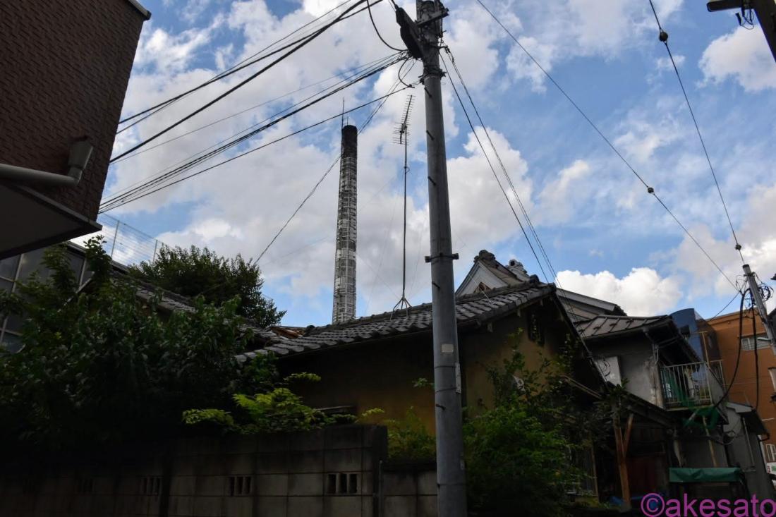 2つ目の銭湯は「金の湯」。青空に映えた金の湯の煙突がお気に入りの写真。