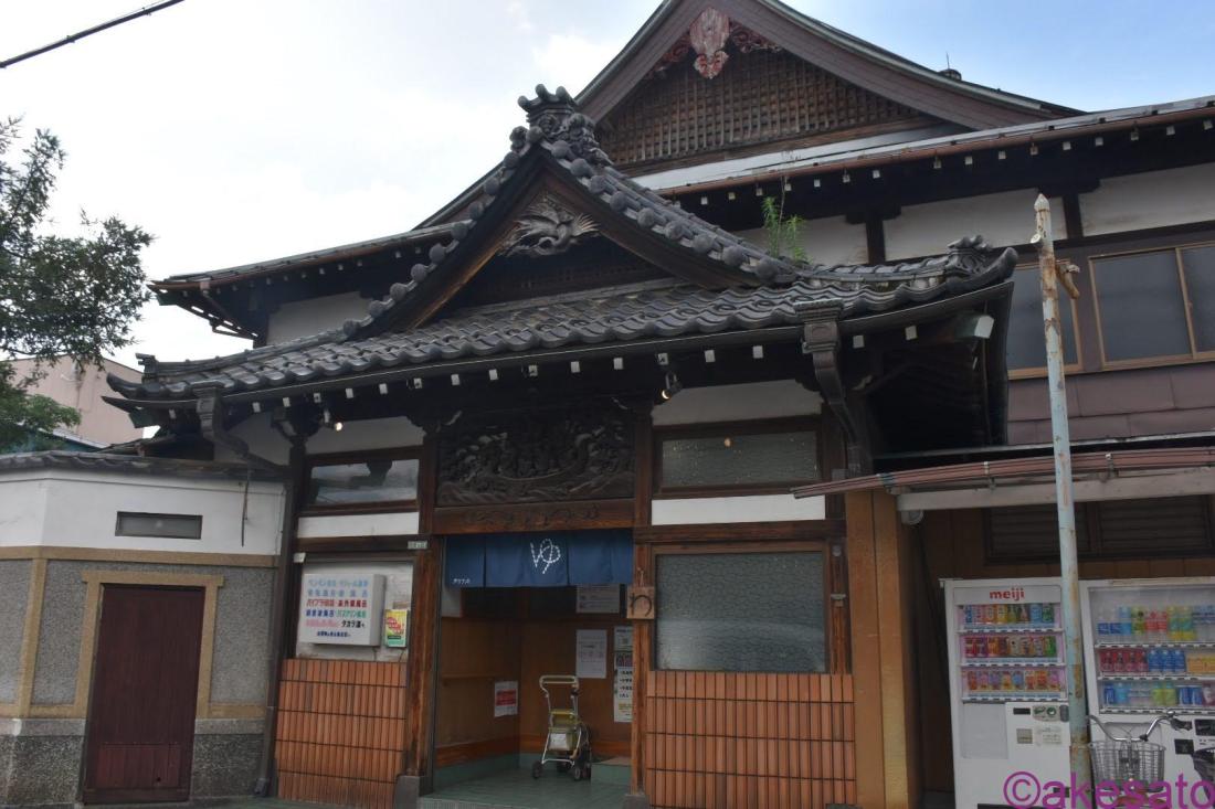 千鳥破風の大屋根に、唐破風の入り口。まるで寺院を思い出すような立派な宮造り型銭湯は、大正松から昭和の初めにかけてよくみられたもの。