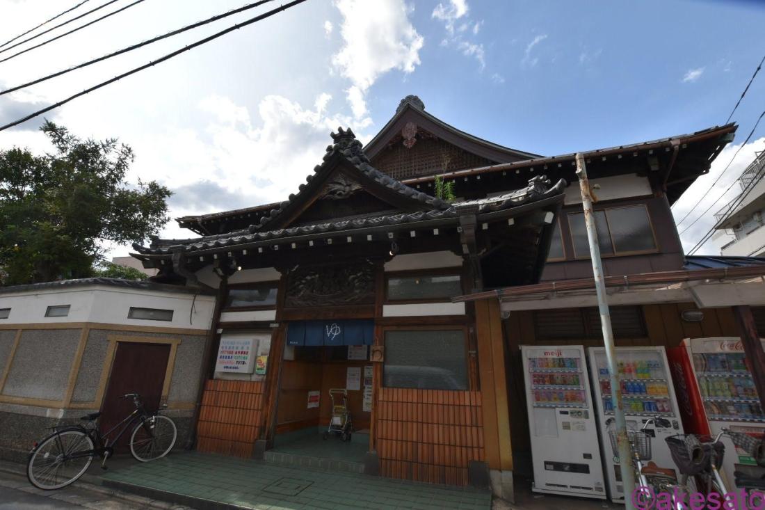 まるでお寺?!と思ってしまうような巨大な宮造りの銭湯建築!写真ではなかなか伝わりにくいですが、かなりの大きさ。