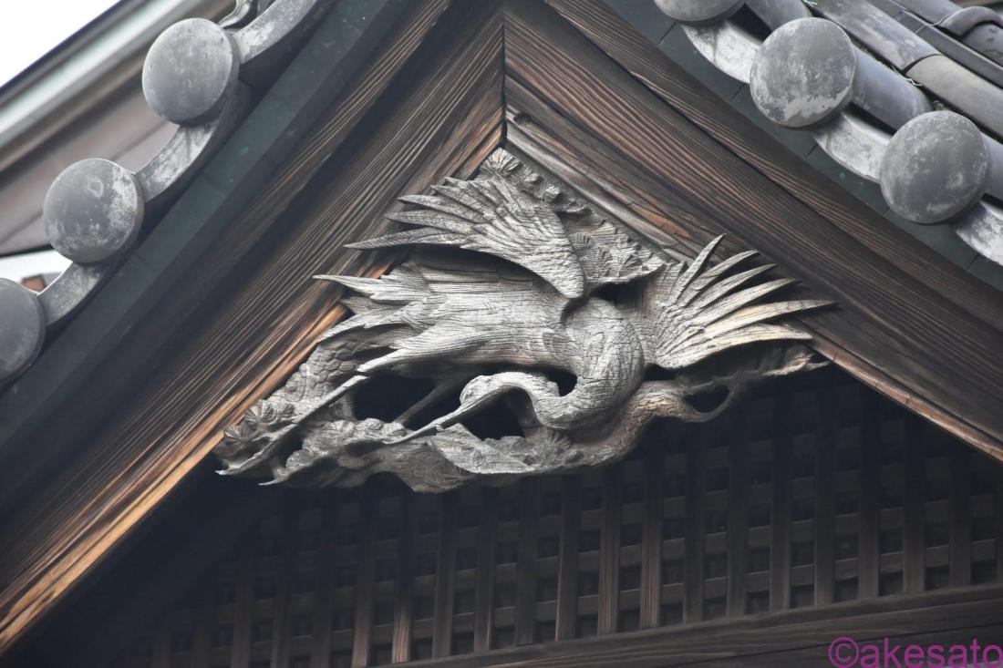 入り口には立派な唐破風は、結界のような役割。また、その屋根についている彫刻は兎毛通し(うのけとおし)と呼び、職人の腕の見せ所だそうだ。