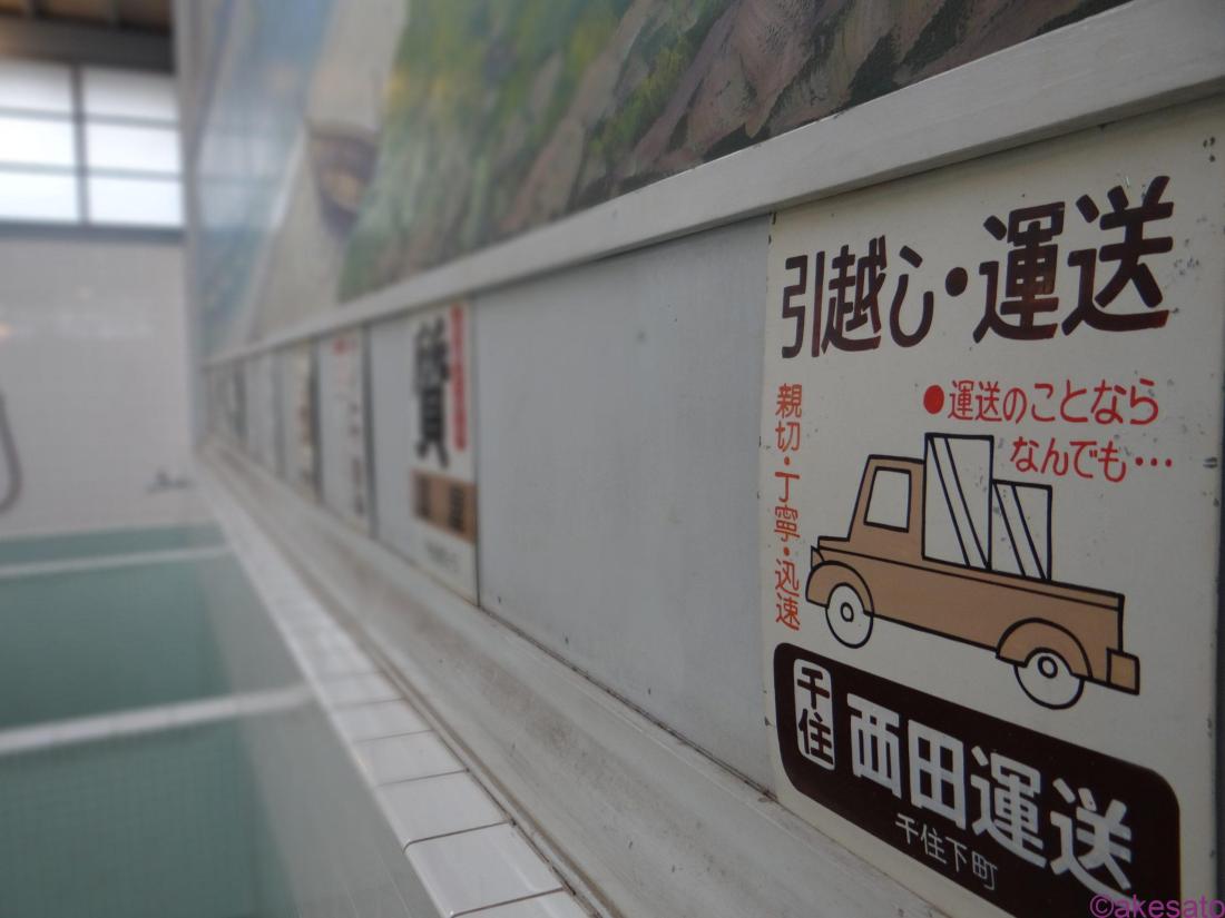 入浴者心得もよく見ると面白い。昭和27年というと、かなり昔のものだなあ。千住の広告が至る所で見られる。現存しているお店もあるのだろうか。