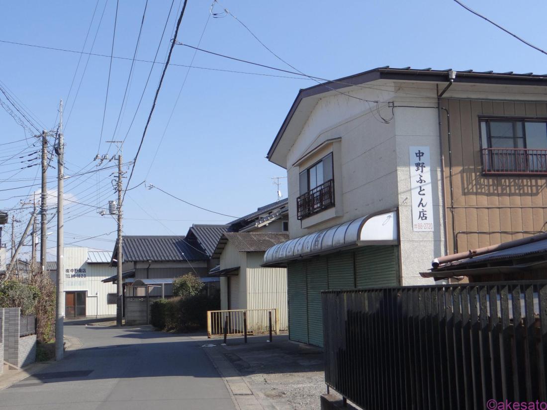 まず見えてきたのは「旧中野ふとん店」。店舗は随分前に閉まっているよう。