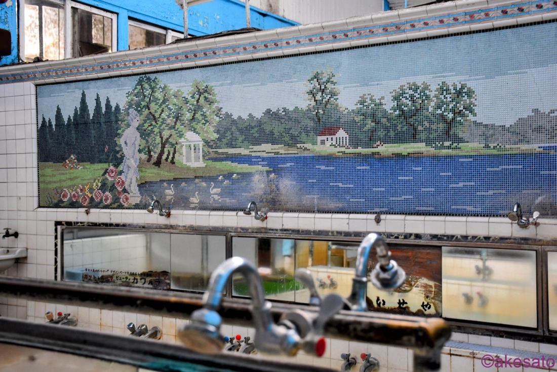 かなり贅沢な造りで、入口や浴槽には金魚が泳ぐ水槽もあった。最近は使われていなかったが、水槽が稼働していた頃の風景を想像するだけでうっとり。