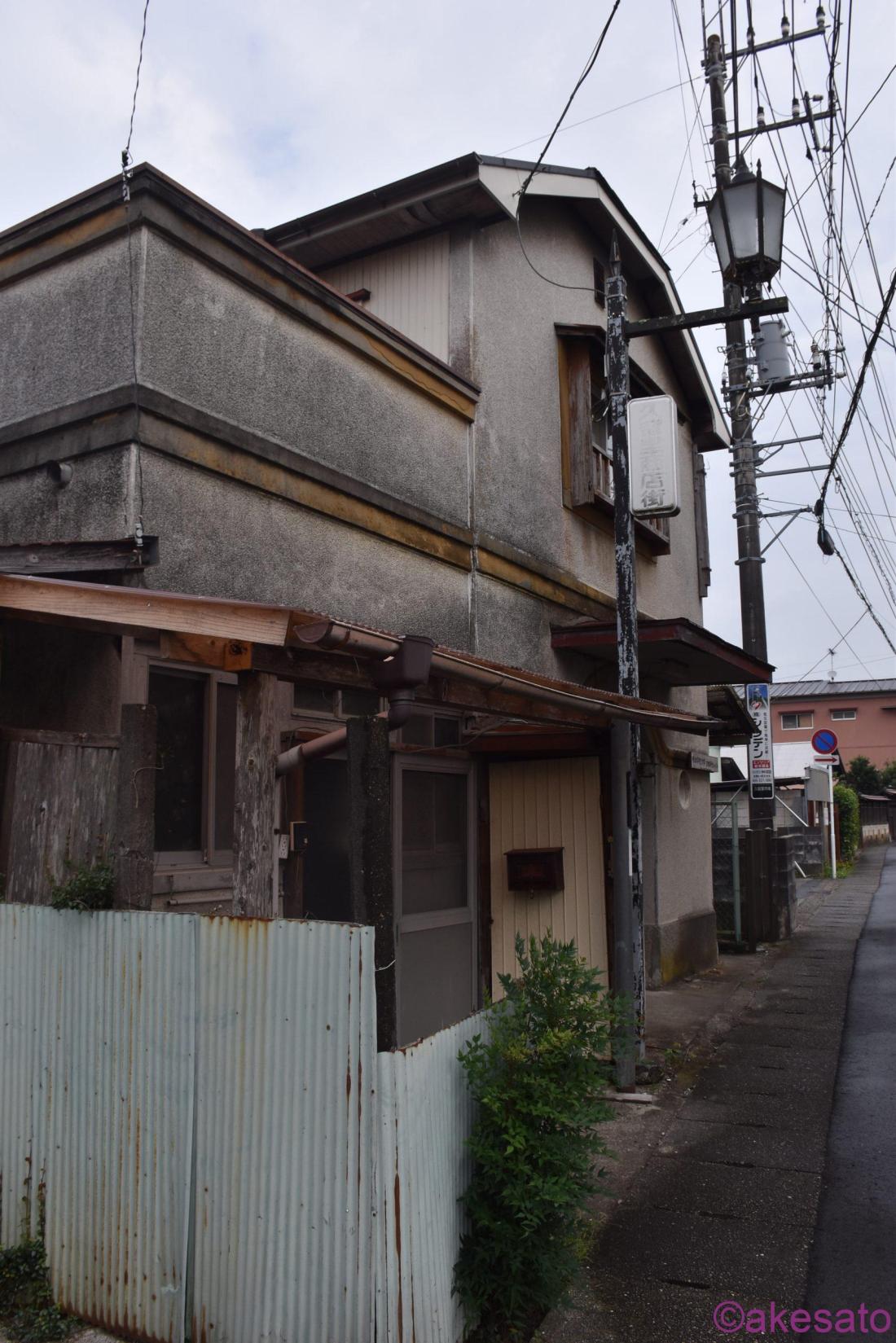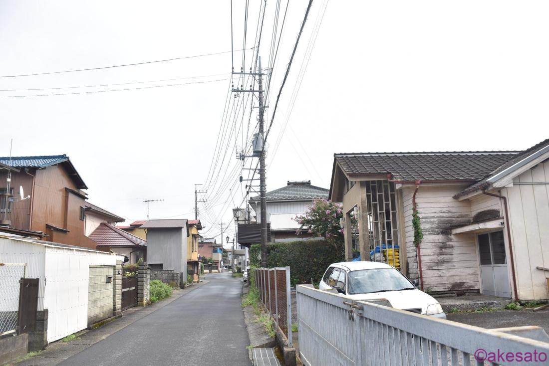 閑静な住宅街、営業しているお店等は見当たらないが古い建物が右手に。