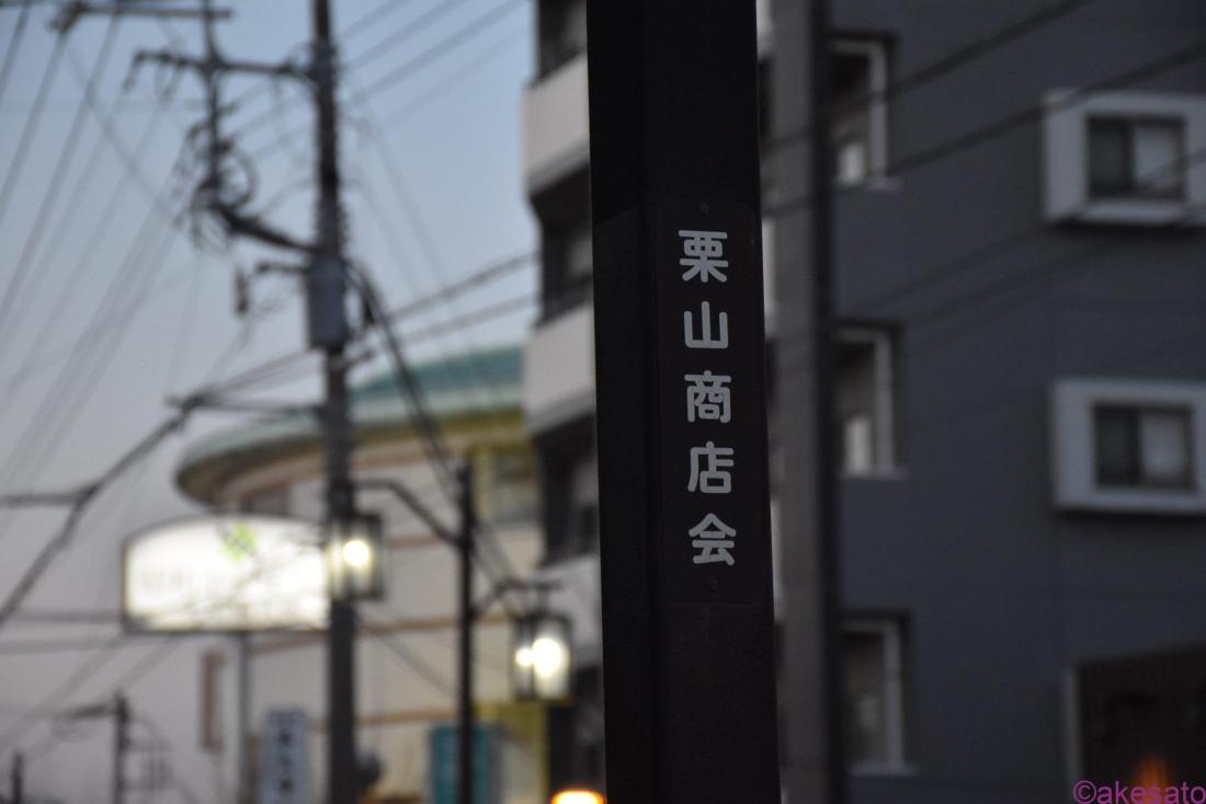 北総線「矢切駅」の南側には「栗山商店会」の街灯が建っている。