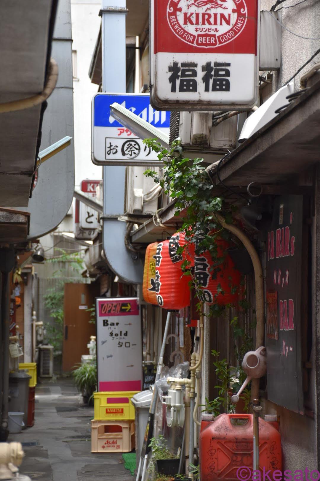 これは、レトロ好きな人にはたまらない、飲み屋横丁だろう。横丁の面積としてはそんなに広くないが、幅や看板の位置、全体の構図がまさに理想的な飲み屋横丁の姿だ。