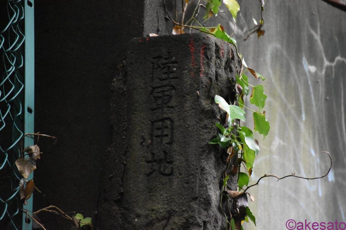 これは「陸軍用地」としっかりと確認できる。赤いペンキのような痕跡が気になるが、赤で塗られていたのだろうか。現在は、コンクリート製の壁に埋もれるように建っている。