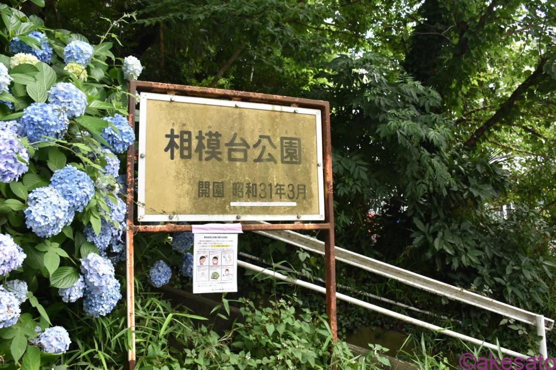 地獄坂を下ると、左手にはまた鬱蒼と茂る高台が見える。相模台公園にも遺跡が残っているとのことで、この茂みの階段を上っていくことに。開園昭和31年と書かれた看板はとても年季が入っている…