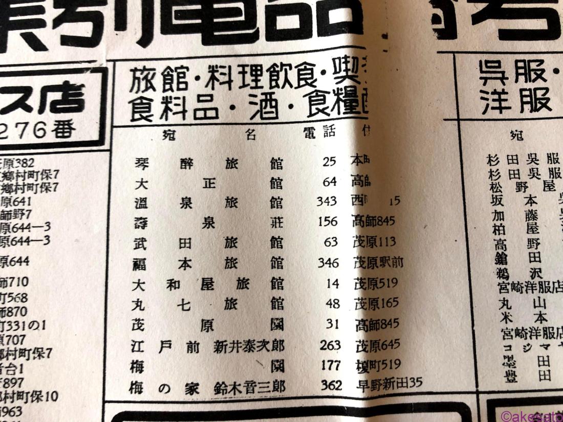 また、こちらは「茂原職業別電話番号表」。今みたいに電話が当たり前ではなかった時代。各地で電話番号のホーロー看板を見かけるけど、町ごとにこうした電話番号表が発行されているとは知らなかった。