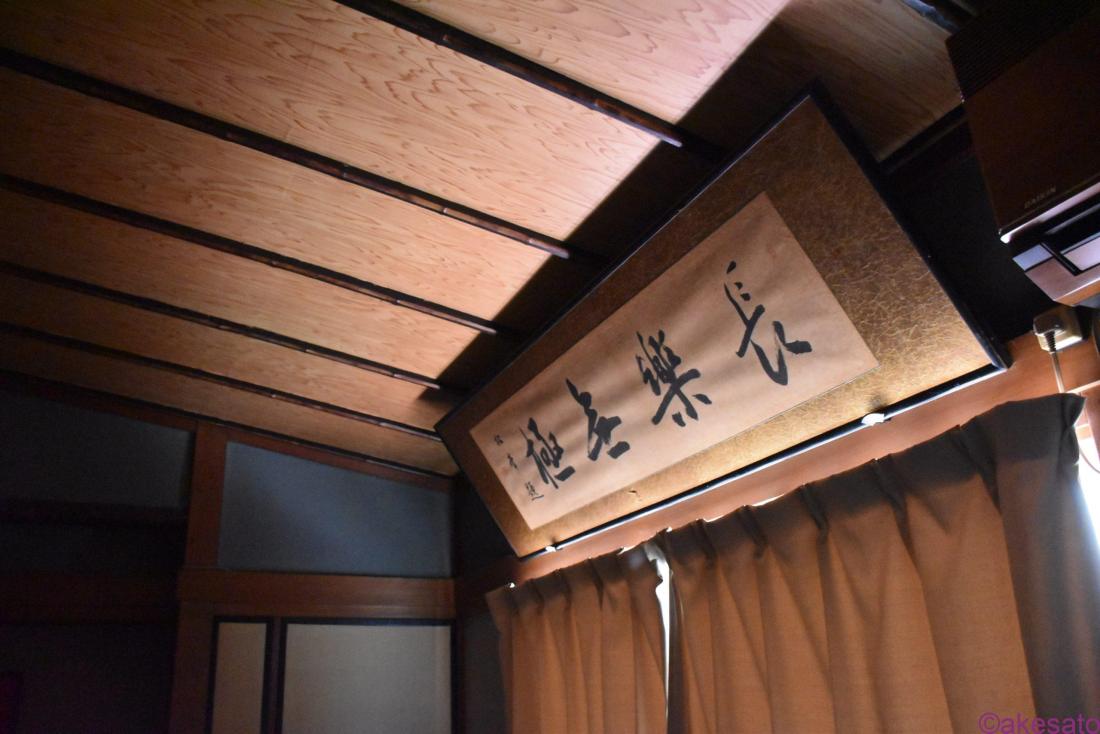 部屋の入り口の壁、引き戸が凝っている。芸妓さんを呼んでいた時代を彷彿とさせる佇まい…