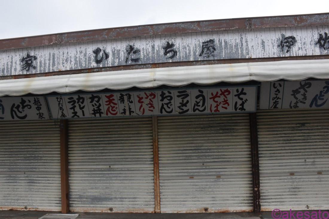 飲食店は営業していないけど、残っている看板から想像する楽しみ。手描きなのか、勢いがあるメニュー看板が良い。そばから、カレーライスまで何でもそろっている定食屋といったところか。