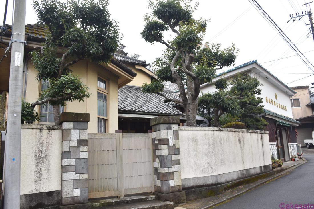 その邸宅の奥には「諸岡市郎左衛門商店」がある。以前の記事でもこの商店の建物について触れたが、一つ見逃したことがあったので今回再訪した。