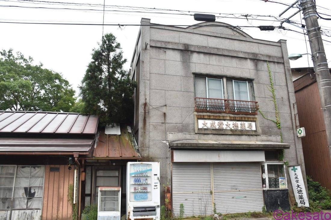 1年前に訪問した時の写真。右が「大徳薬局」、左が「大徳書店」。