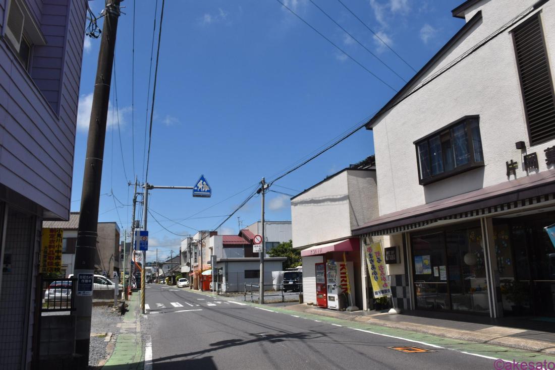 引き返し、駅前の交差点から左折した商店街の街並みへ。金子屋はお食事処だったようだ。