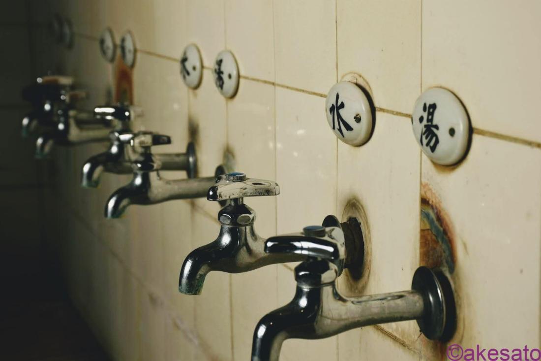 水・湯。陶製の表示が素敵だ。