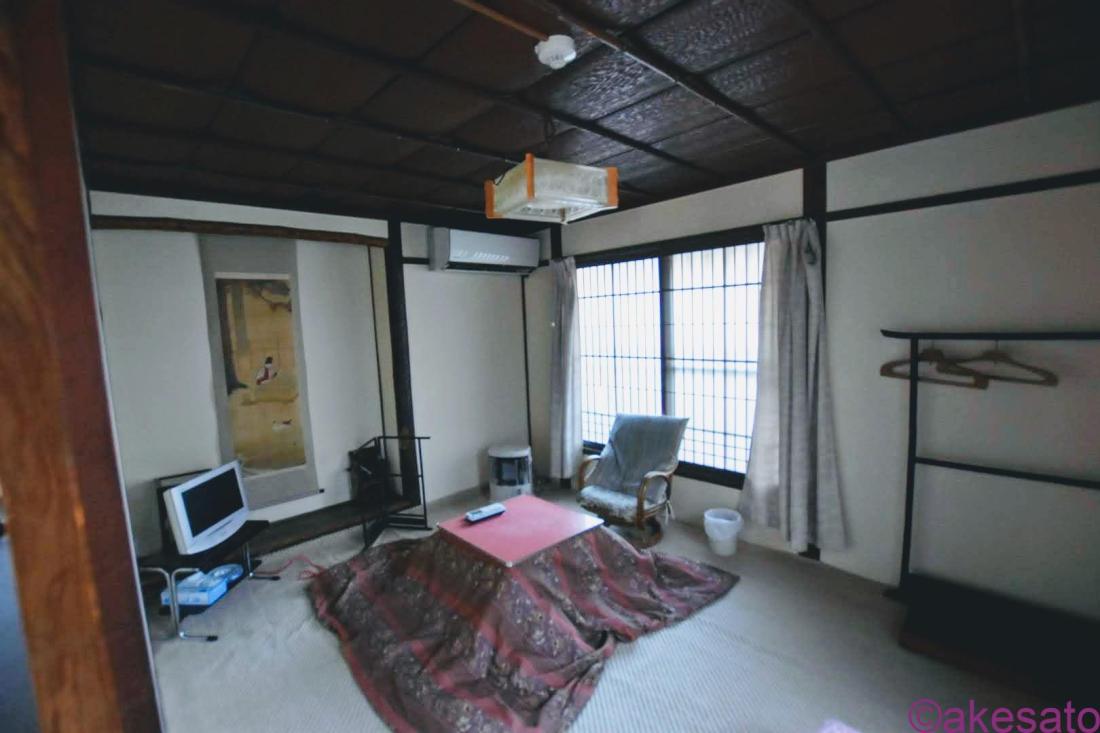 真ん中にこたつ、テレビ、鏡…必要なものは揃っている。