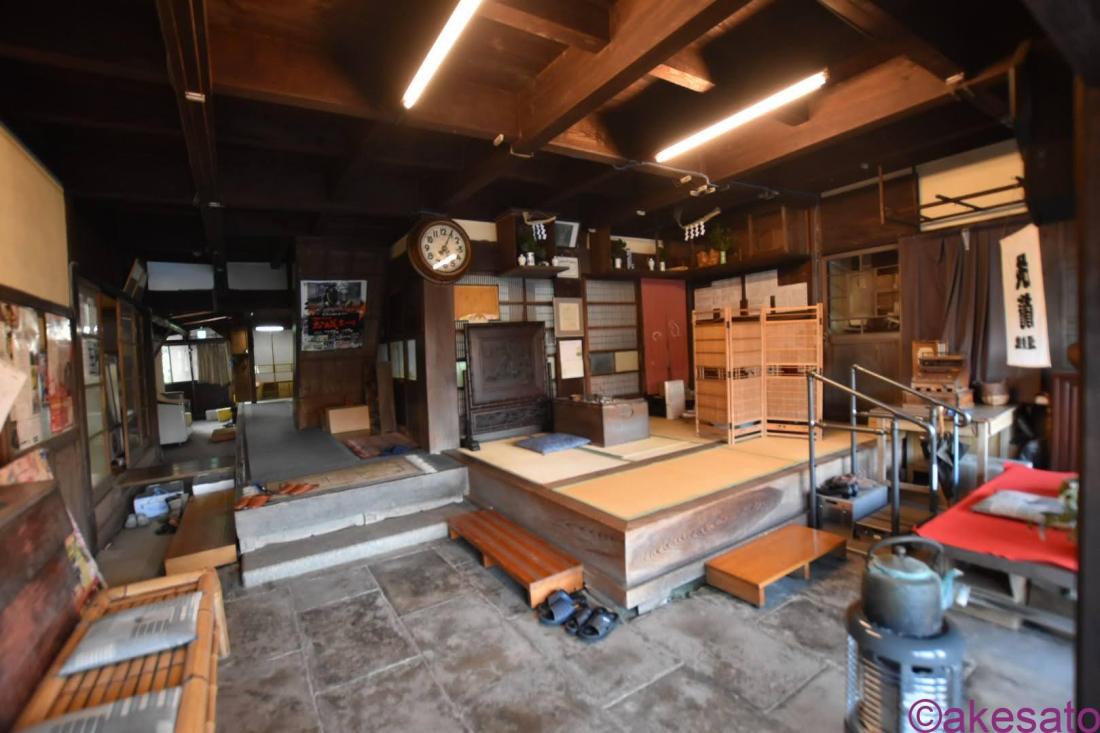 土間が奥までつづいている。この辺りはキッチンや女将さんの部屋がある。