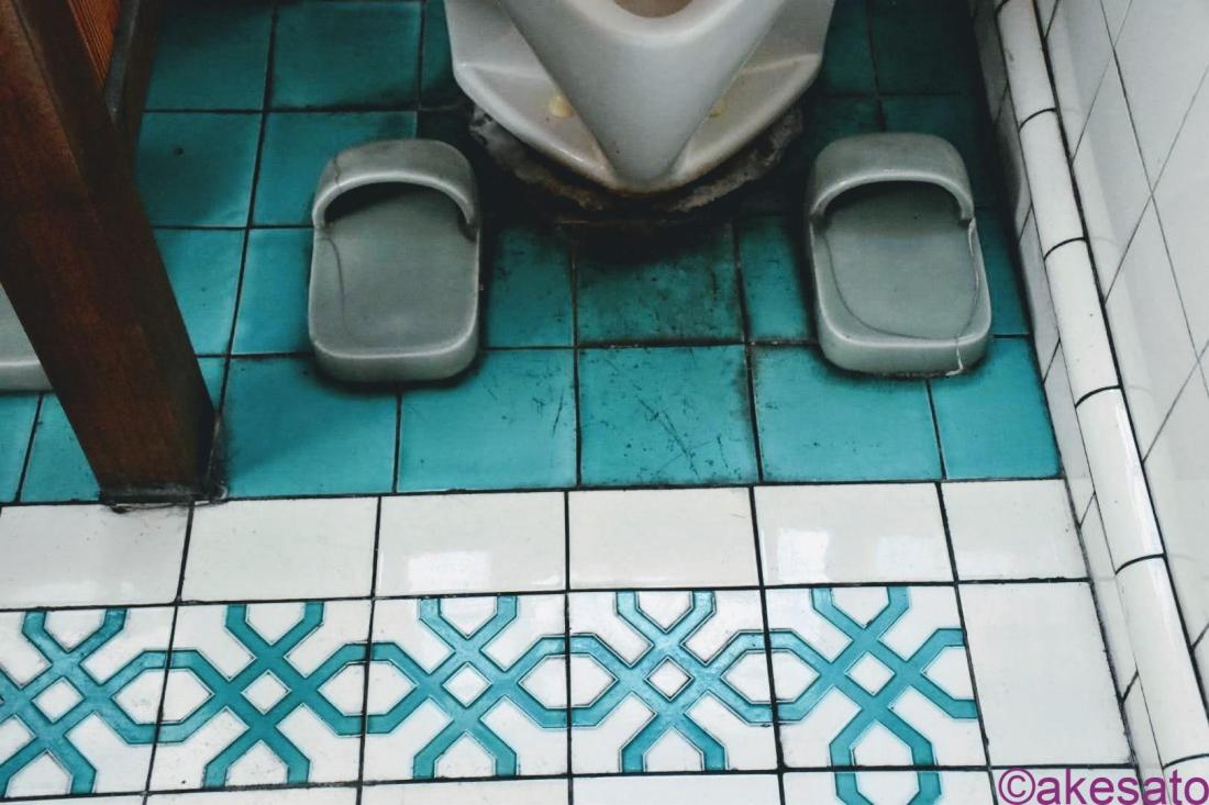 隠れているが、床はタイルだ。