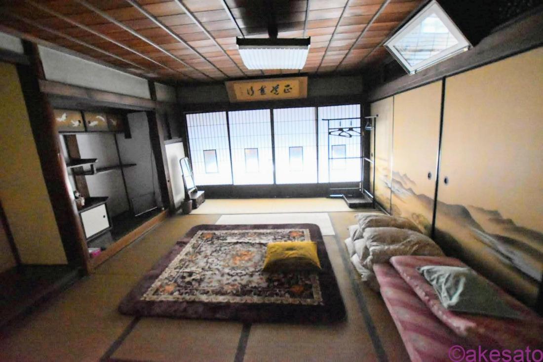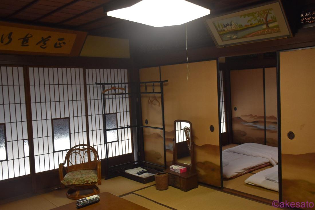 私はぐっすり寝れたけど、夜は部屋の上にある欄間が開いていて向こうの暗い部屋が見えるのがちょっと怖かった。おまけに、この日は強風で部屋全体がガタガタ揺れていた…まあ、そんなもんだよね。