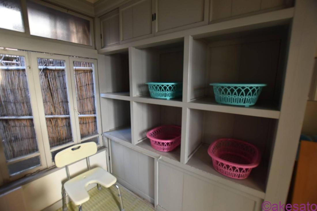 脱衣所の棚も趣がる。家にも欲しい…