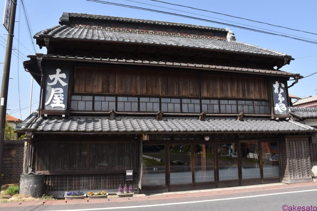 多喜城下、夷隅神社を核として形成される新丁地区の参道脇に位置する門前宿。江戸期から続く老舗旅館で、明治24年(1891)歌人・正岡子規が学生時代、房総の旅に出た折、当所に泊まったともされている。また、同館では大正期から昭和初期にかけ、旅館業のほかにアメリカの自動車会社フォードの車を使用した乗合自動車事業も営んでいたという。今も旅館を営むが、往時の面影を残す建物として、ドラマや写真集のロケ地としても利用されている。