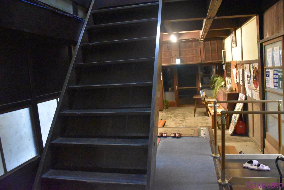 さあ、いよいよ2階へ。写真でもわかる通り昔ながらの急勾配な階段。