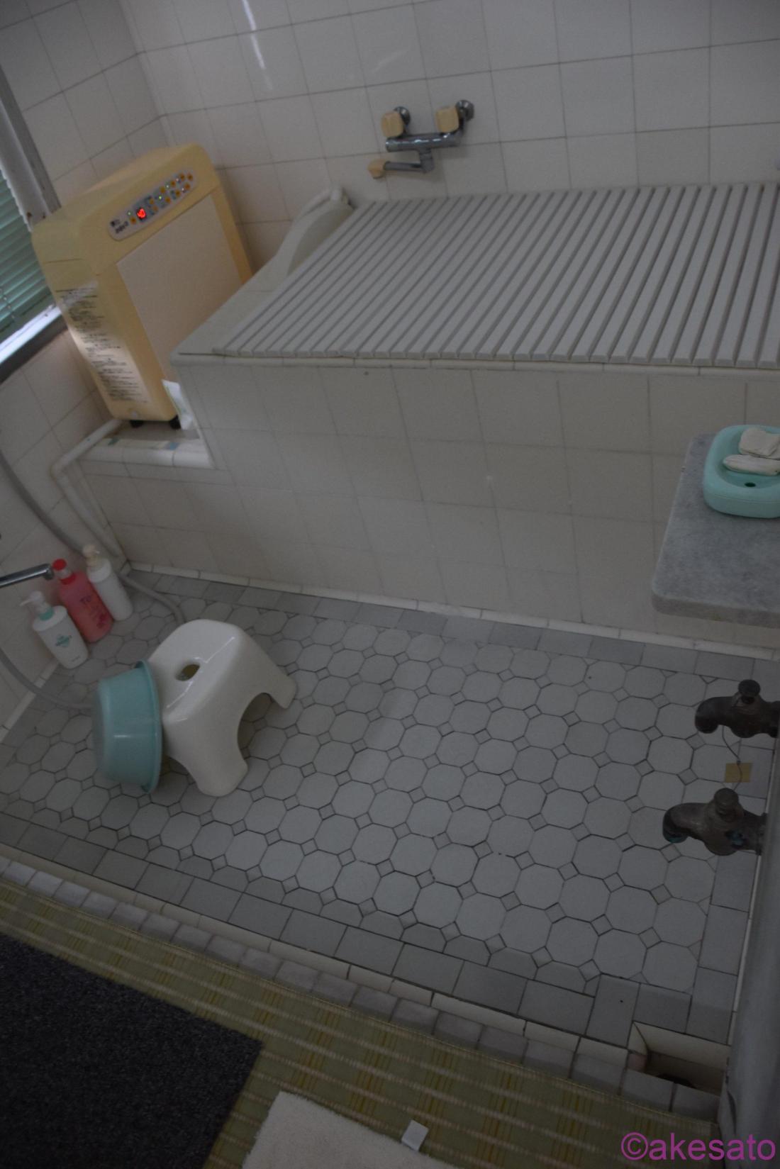 風呂場は雰囲気がガラッと変わる。増築した部分で全体的に洋風~!
