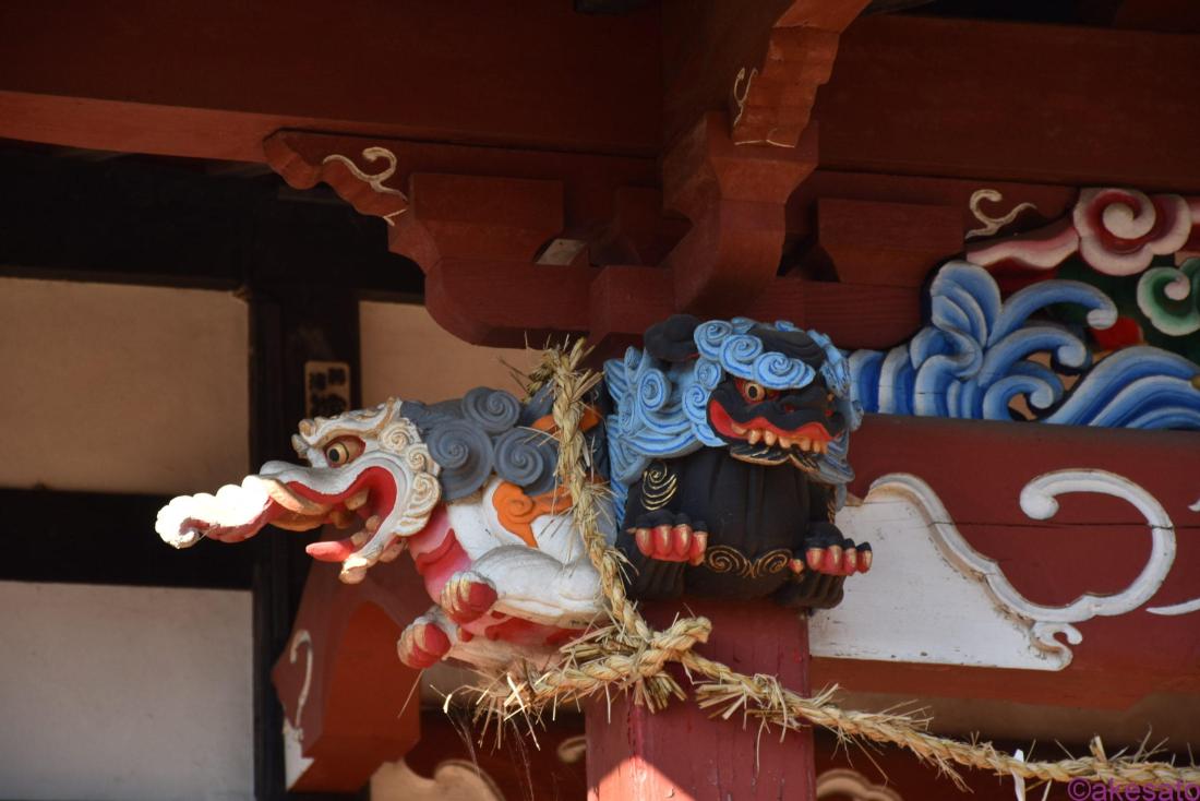 特に社殿の鮮やかな彫刻に目を奪われる。色は後付けだと思うが、地域の方々によって大事に美しい姿が守られているのだろう。
