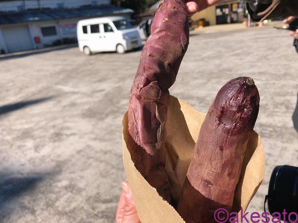 熱々の焼き芋を購入してみた。その場でいただきました。蜜がとろける美味しい焼き芋で満足!