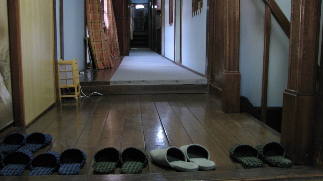 扉を開けると広い玄関。玄関と1階部分は飲食スペースとして改装されており旅館の面影はない。だが、急階段や2階の座敷は健在のようなのでまた機会があったら見学してみたい。