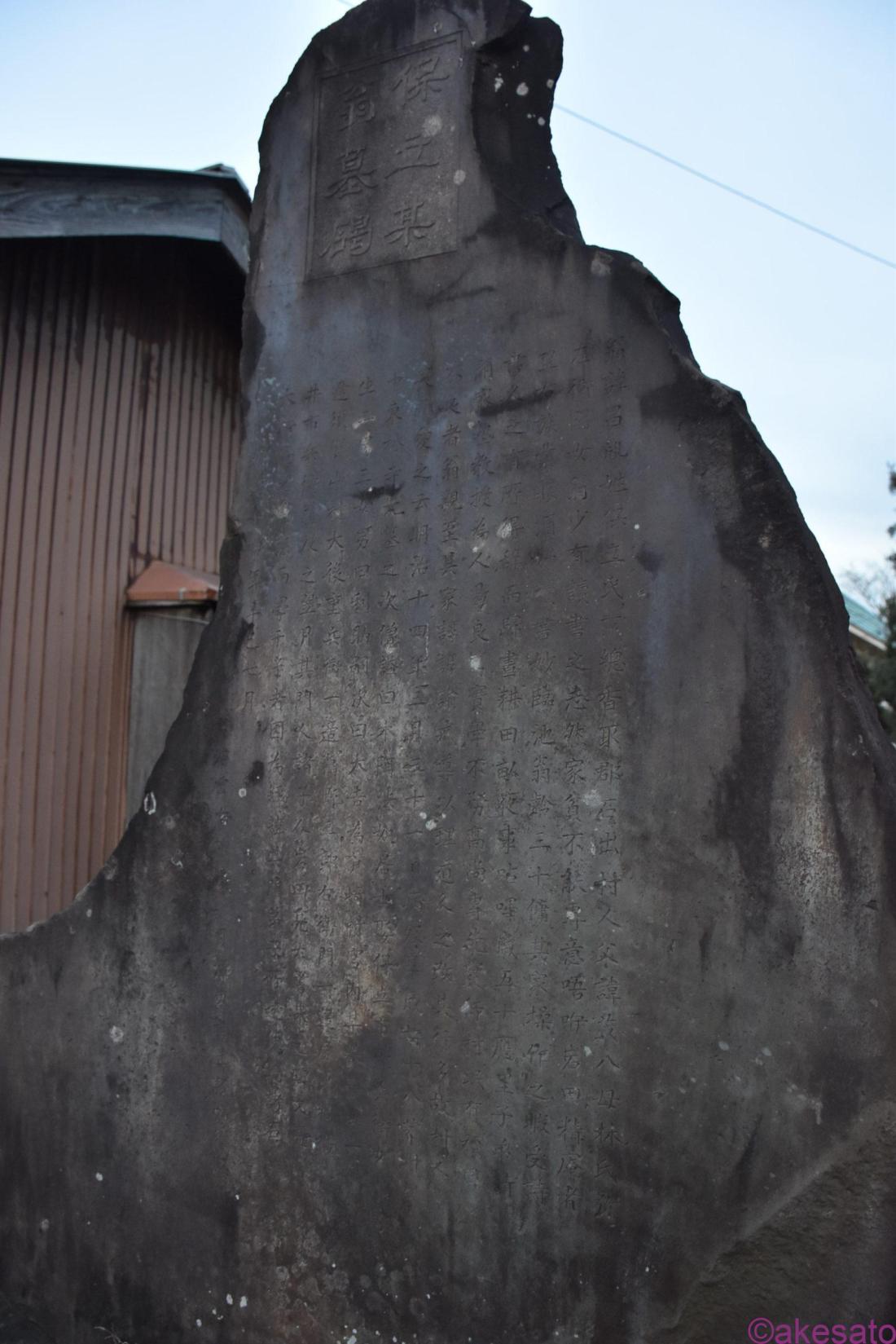 「保立某翁墓碑」?明治14年に建立されたようだ。三日月のような独特な形状をしている。