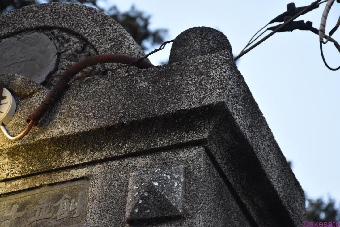 側面には「寄贈 退団者一同芳名」が刻まれ、昭和初期に建造されたものであることが分かる。