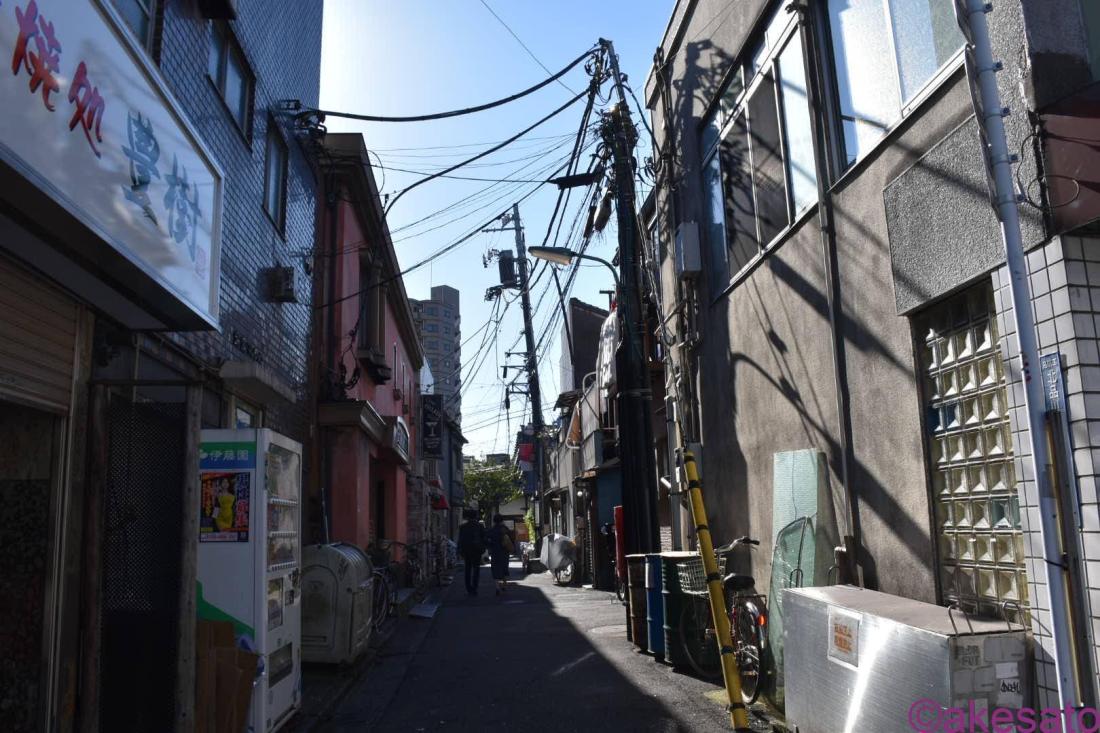 横丁には飲食店がちらほら。古い家屋が密集している。