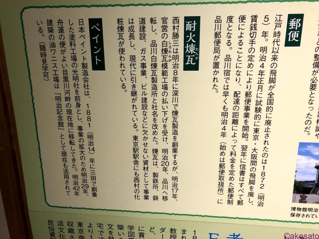 なぜだろうと思っていたら、耐火煉瓦の解説が載っていた。明治20年に耐火煉瓦の工場が品川に移転したためだと考えられる。現代に引き継がれる耐火煉瓦。