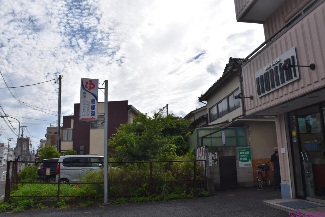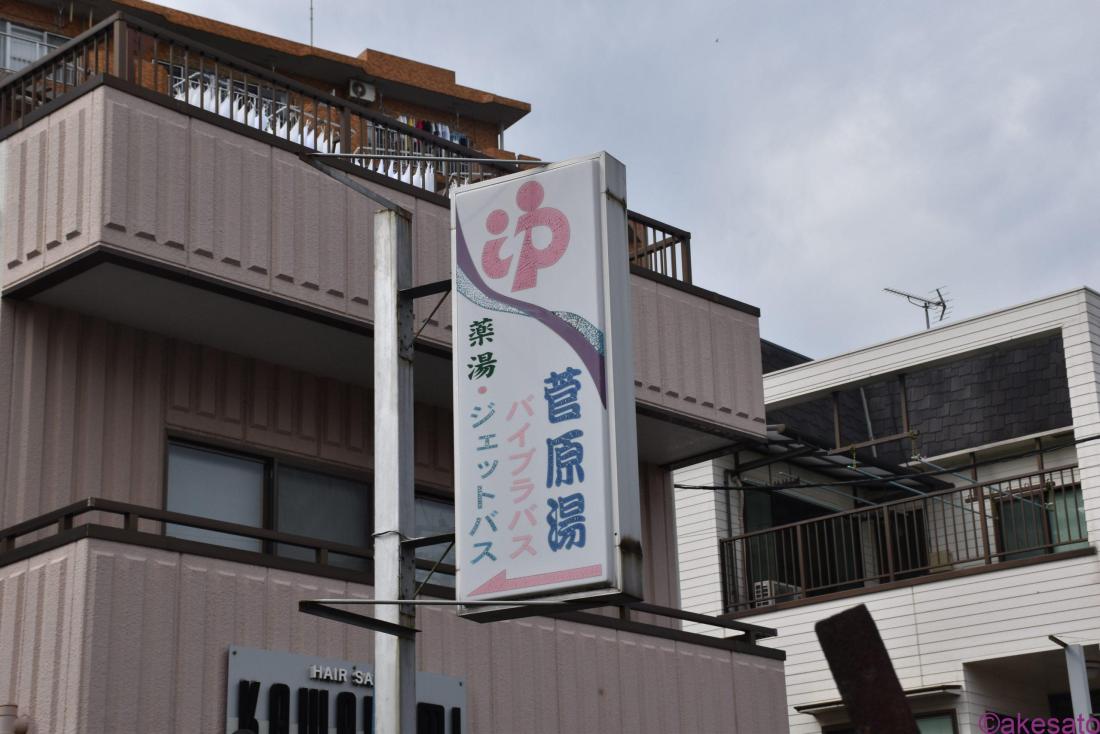 千葉街道沿い、新小岩駅から徒歩20分の位置にある銭湯「菅原湯」。