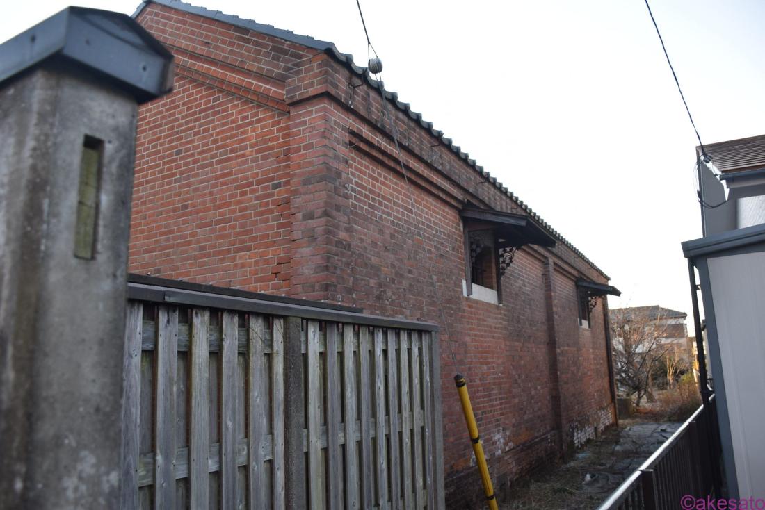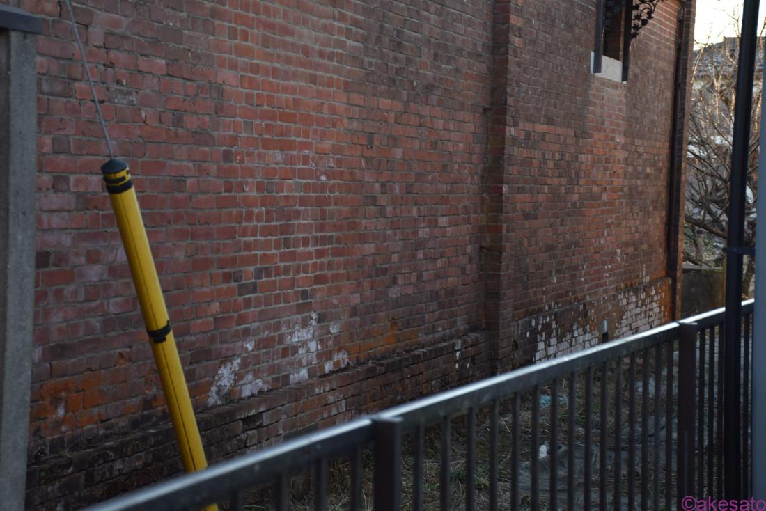 夕陽に照らされてキラキラと輝いていた。これも焼過煉瓦の特徴なのだろうか。焼過煉瓦の煉瓦建造物はあまり見たことが無いので希少なのでは。