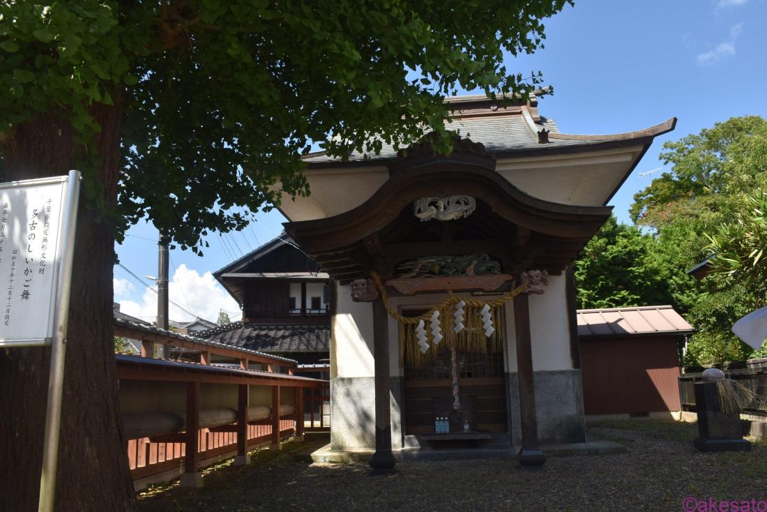 江戸時代から続く多古町で最も大きなお祭り「祇園祭」が開催される神社であり、祇園祭の神事の一つ「多古のしいかご舞い」は千葉県指定無形民族文化財に指定されています。