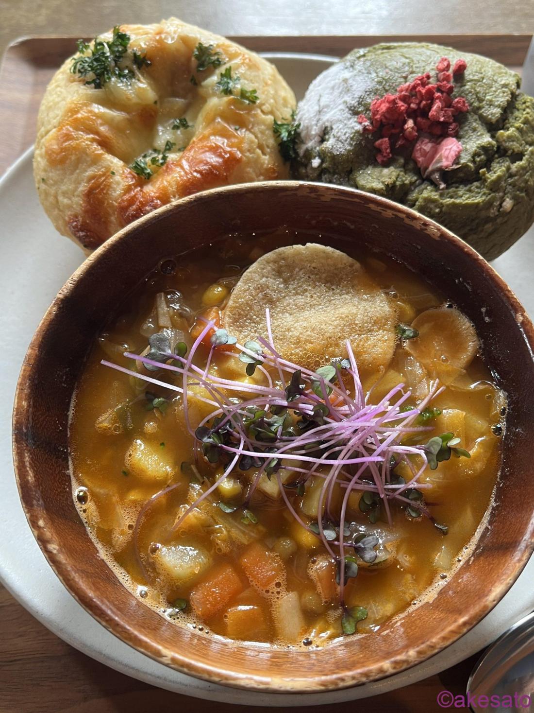 昼は駅前の「Kichi (吉)」にて。鯛あら汁の冷たいのとおにぎりをいただきました。