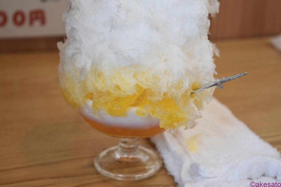 名称にあるように本当にふわふわでくちどけ滑らかなかき氷。シロップもたっぷりで凄く美味しかったな。300円は安い。